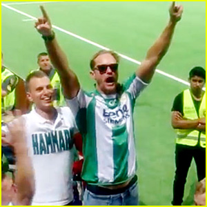 Alexander Skarsgard Leads Cheer at Swedish Soccer Match!