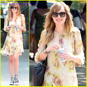 Dakota Johnson dons a floral dress while taking a stroll on Friday (July 25) in New York City.