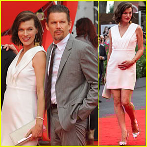 Milla Jovovich flaunts her small baby bump while attending the premiere of her latest film Cymbeline premiere during the 2014 Venice Film Festival on Wednesday (September 3) in Venice, Italy.