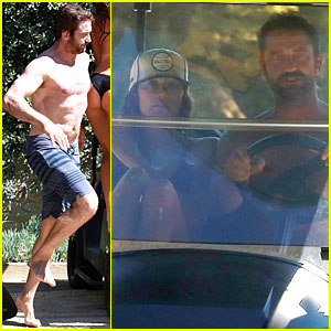 Gerard Butler goes shirtless sexy while enjoying a hot day at the beach on Thursday (September 25) in Malibu, Calif.