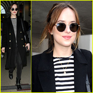 Dakota Johnson makes her way through LAX airport on Saturday (January 16) in Los Angeles.