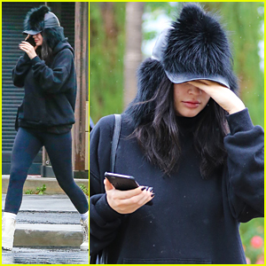 Kylie Jenner keeps her face hidden behind her hand while out for lunch on Saturday afternoon (April 9) in Calabasas, Calif.