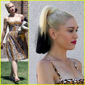 Gwen Stefani rocks an animal print dress and dyed black hair as she heads to her son’s basketball game on Saturday (June 4) in Hollywood, Calif.