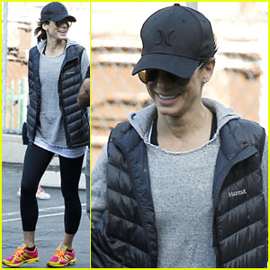 Sandra Bullock rocks a pair of colorful sneakers as she leaves her local gym on Monday (April 8) in Los Angeles.