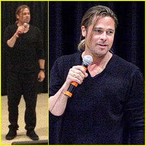 Brad Pitt surprises yet another movie theater full of fans at a screening of his new film World War Z on Thursday evening (June 6) at the King of Prussia Mall in Philadelphia, Penn.