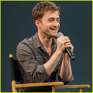 Daniel Radcliffe cracks a huge smile on stage while answering fan questions at an Apple store event on Saturday (August 23) in London, England.