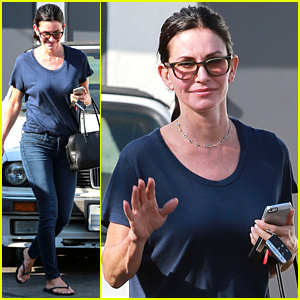 Courteney Cox waves to her fans as she leaves the salon on Tuesday (September 16) in Beverly Hills, Calif.