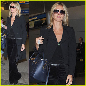 Heidi Klum rocks velvet pants while arriving on an international flight at LAX Airport on Sunday (September 21) in Los Angeles.
