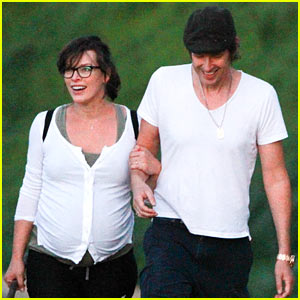 Milla Jovovich shares a laugh with her husband Paul W.S. Anderson while out on a hike on Saturday (March 7) in Beverly Hills, Calif.