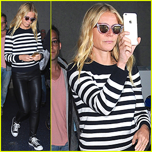 Gwyneth Paltrow rocks a pair of leather pants while arriving on a flight at LAX Airport on Friday (May 22) in Los Angeles.