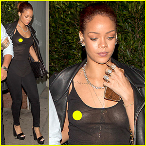 Rihanna exposes her top half in a totally sheer shirt while out to dinner at her favorite restaurant Giorgio Baldi on Tuesday (June 30) in Santa Monica, Calif.