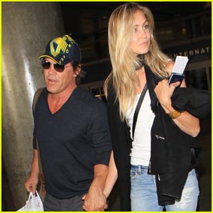 Josh Brolin walks hand-in-hand with fiancee Kathryn Boyd while touching down at LAX Airport on Friday (September 4) in Los Angeles.