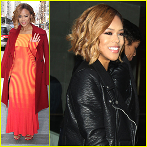 Serayah wows in a bright orange dress while leaving Music Choice in New York City on Thursday (March 24).