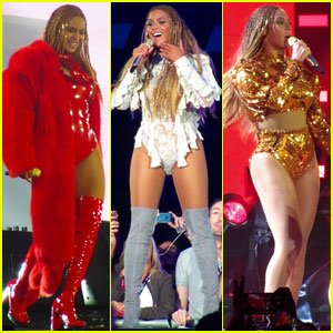 Beyonce changes up her outfit multiple times while performing live at the legendary Wembley Stadium on Saturday night (July 2) in London, England.
