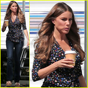 Sofia Vergara grabs a hot drink and a bite to eat in between takes on the set of Modern Family on Wednesday (September 28) in Los Angeles.