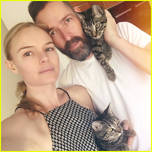 Kate Bosworth and her husband Michael Polish pose for a cute selfie with their cats in this photo shared to her Instagram account.